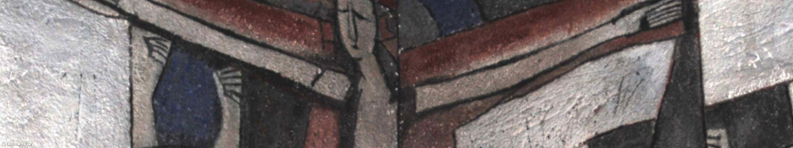 Das Altarfresko mit der Golgathaszene und die Fenster der Immanuelkirche gestaltete der Künstler Hubert Distler im Jahr 1966. Der Maler und Grafiker wurde am 13. Juli 1919 in Lindau geboren und lebte vorwiegend in Grafrath bei München. Während des Kriegsdienstes entstanden erste Aquarelle und Zeichnungen. 1942 nahm er ein Studium bei Franz Klemmer an der Akademie der Bildenden Künste in München auf, der Kirchenmalerie lehrte. 1943 wurde er wieder einberufen und bei Nikolajew schwer verwundet, er verlor ein Bein. Nach Kriegsende setzt er in den Jahren von 1947 bis 1952 sein Studium bei Klemmer fort. In der Mitte der 1950er Jahre ergab sich eine Zusammenarbeit mit namhaften Architekten, er entwarf für sie vorwiegend Kirchenausstattungen, schuf aber auch Grafiken und Holzschnitte. Eine besonders intensive Zusammenarbeit ergab sich mit den Architekten Franz Lichtblau, Olaf Andreas Gulbransson und Theo Steinhauser, die seinen eigenwilligen, häufig christliche Symbolik stark abstrahierenden Stil, besonders schätzten. Zu seinen Werken zählen Glasfensterentwürfe, Deckenfresken, Kruzifixe. Auch Orgelgehäuse wurden von ihm gestaltet. Hubert Distler verstarb am 1. Juni 2004 in Grafrath.